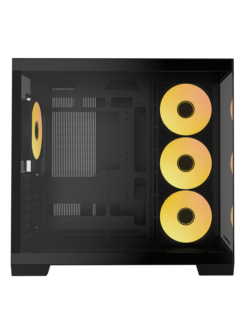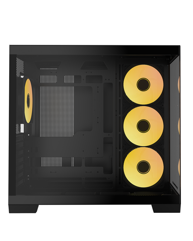 Includes a One-Piece 360mm ARGB reverse fan on the side and a 120mm ARGB fan at the rear, enabling easy management of lighting effects through the LED light switch button or your ARGB-compatible motherboard.