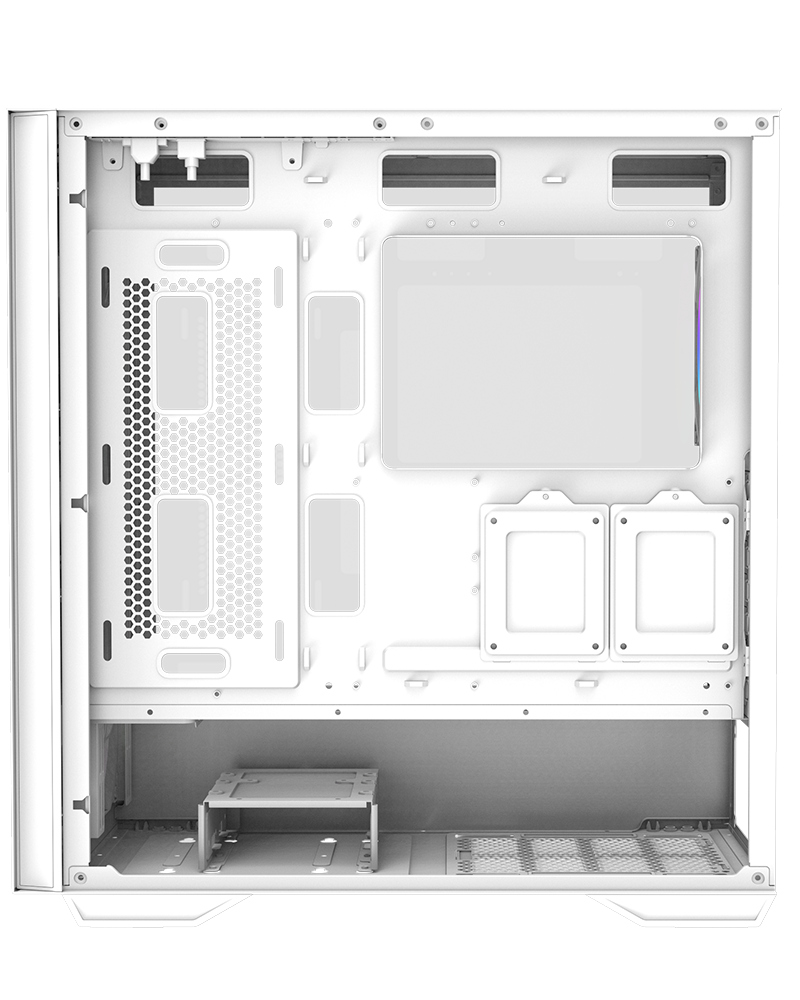 X605 features a sleek 4mm tempered glass sliding side panel, offering effortless removal and assembly while showcasing your build with style and durability.